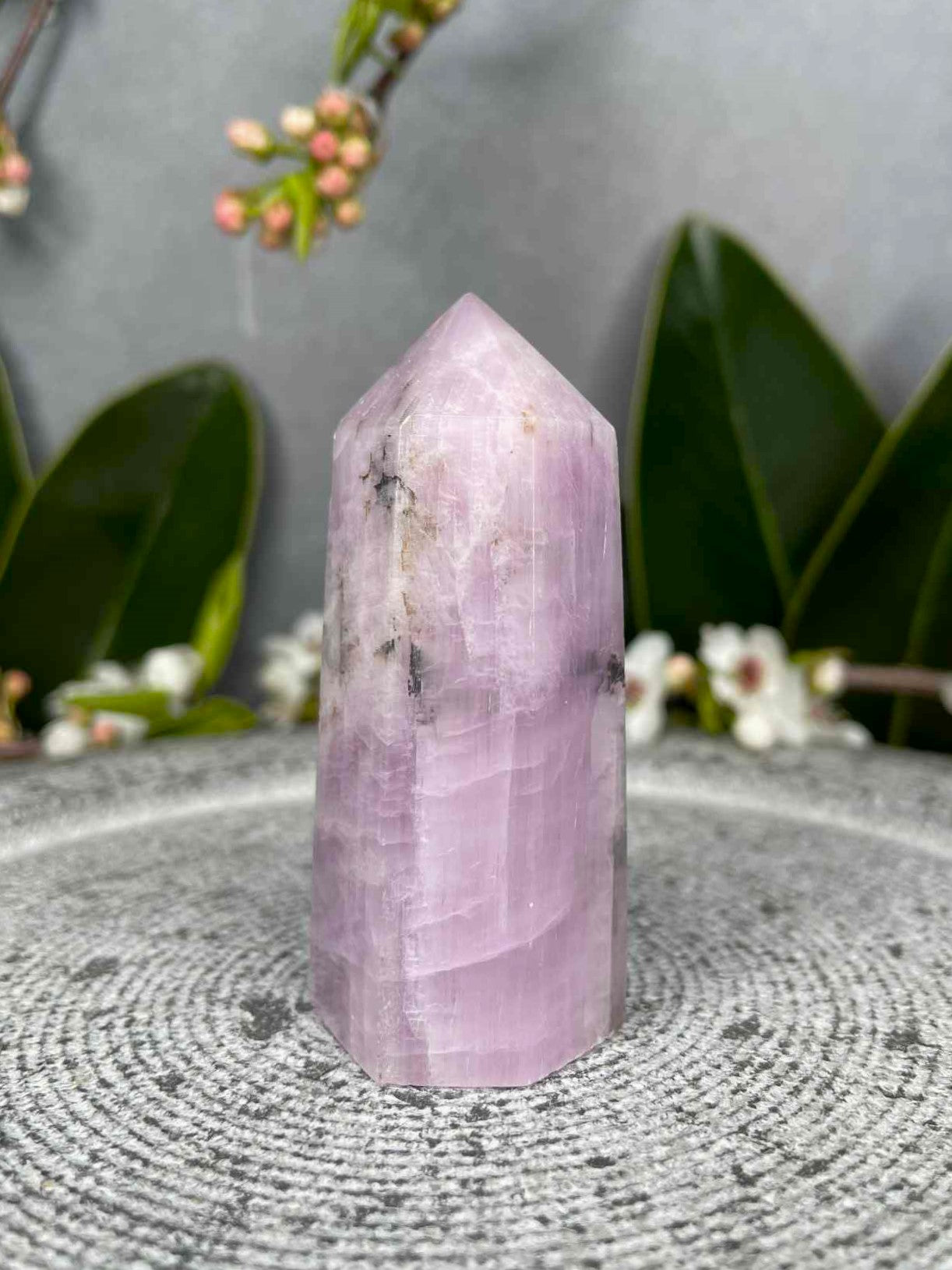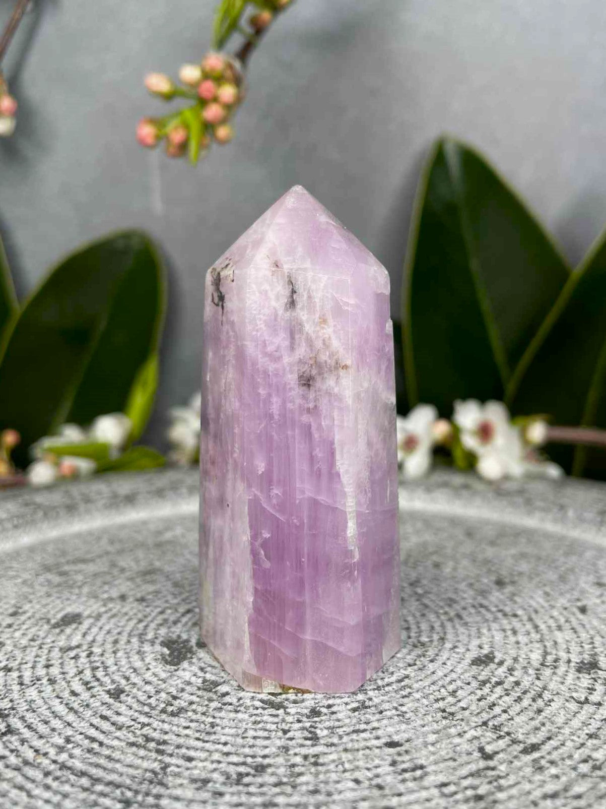 Kunzite is often called the “Stone of Emotion,” believed to open the heart, encourage compassion, and dissolve stress. Even in its lower grades, Kunzite is treasured for its ability to bring peace, balance, and gentle uplifting energy. This tower makes an excellent companion for emotional healing, promoting self-love, and inviting tranquility into any space, all while being a more accessible option for crystal enthusiasts.