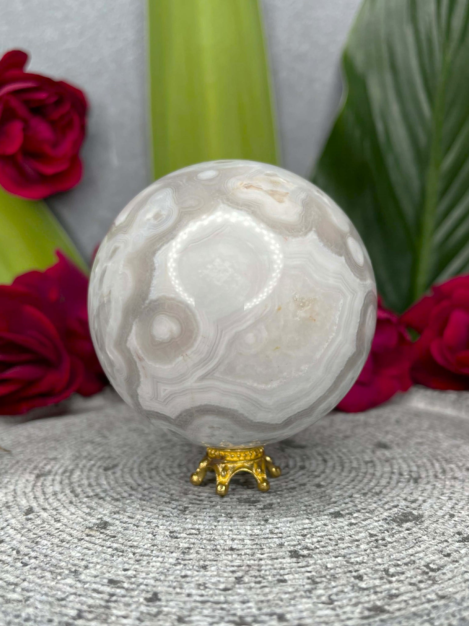 Banding White Agate Crystal Sphere Ball