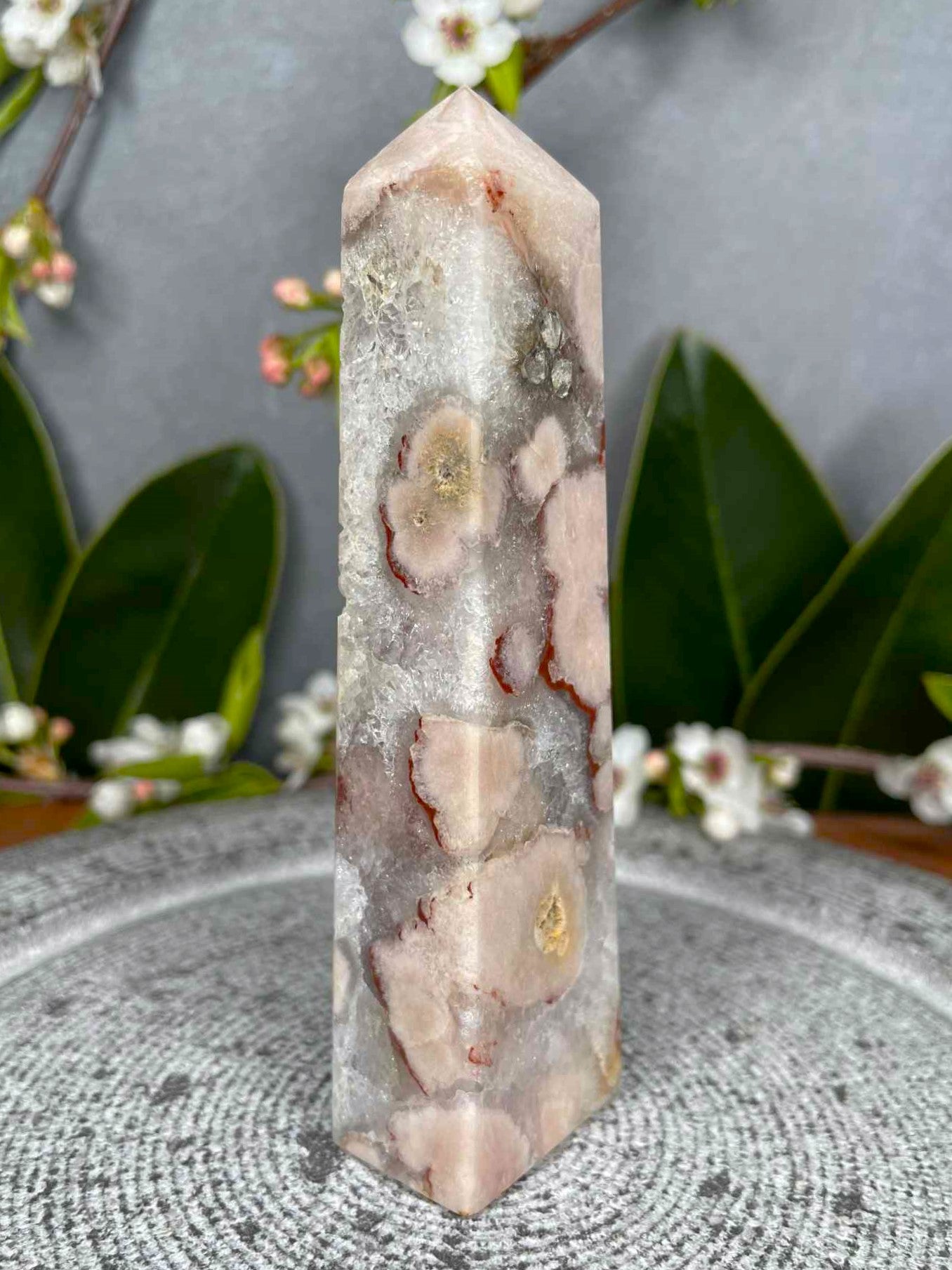 Metaphysically, Flower Agate is said to inspire growth, new beginnings, and emotional healing. It encourages self-discovery while dissolving fear and self-doubt, helping you blossom into your highest potential. Placing a Flower Agate Tower in your home or workspace promotes harmony, motivation, and a sense of peace, making it ideal for meditation, manifestation, or simply uplifting the atmosphere with its radiant, floral beauty.