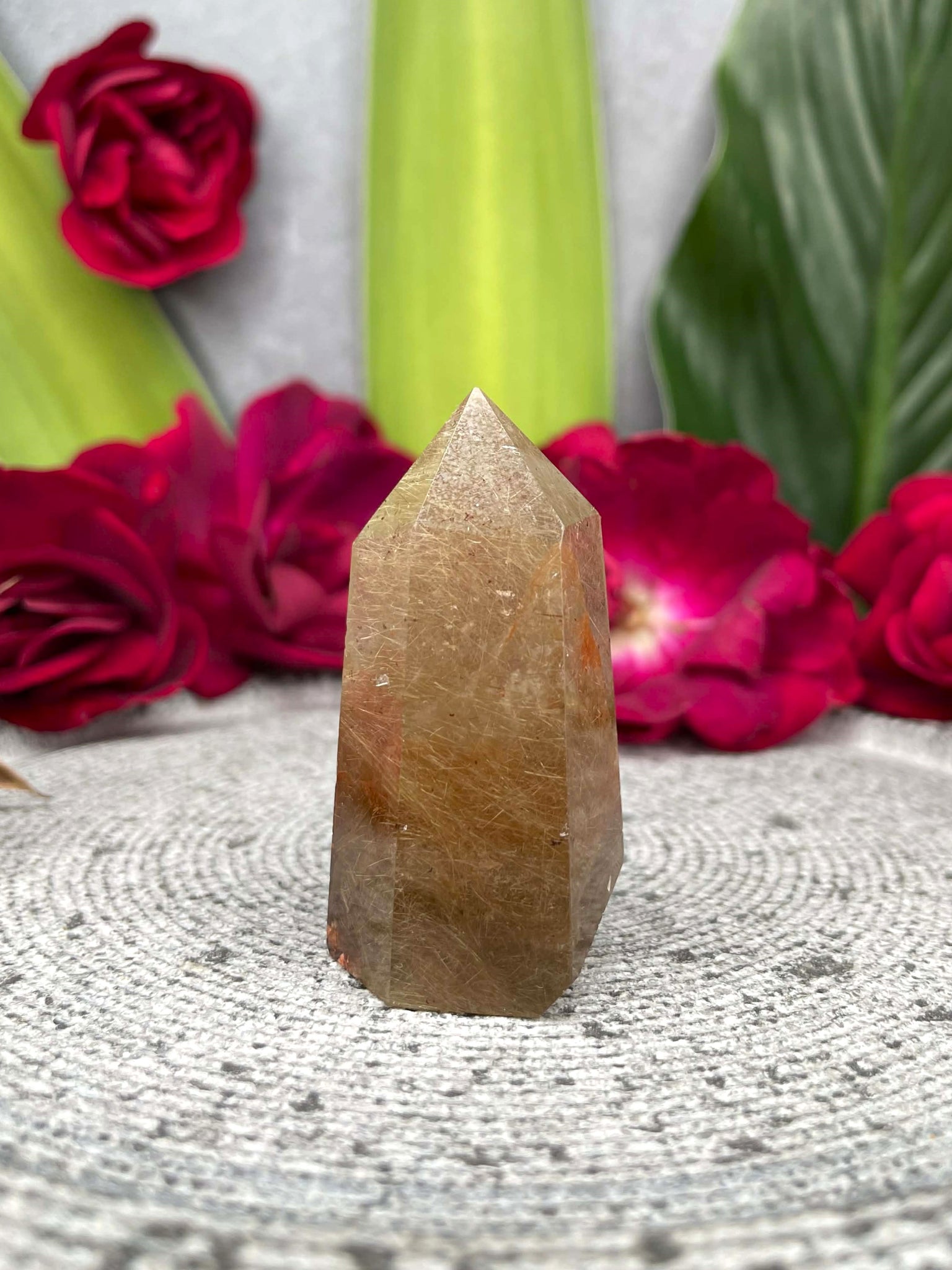 Rutile Quartz is celebrated as a stone of clarity, manifestation, and energy amplification. The golden inclusions are said to illuminate the mind, dissolve negativity, and inspire confidence and creativity. In tower form, it directs this energy upward, enhancing focus, uplifting the spirit, and creating a vibrant, harmonious atmosphere in any space.