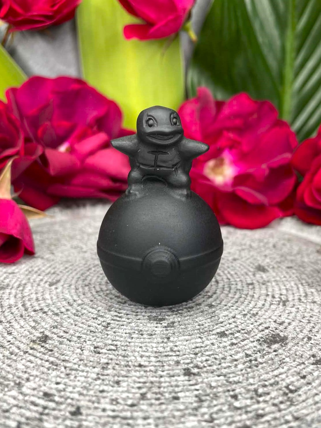 Black Obsidian Squirtle Poké Ball Crystal Carving
