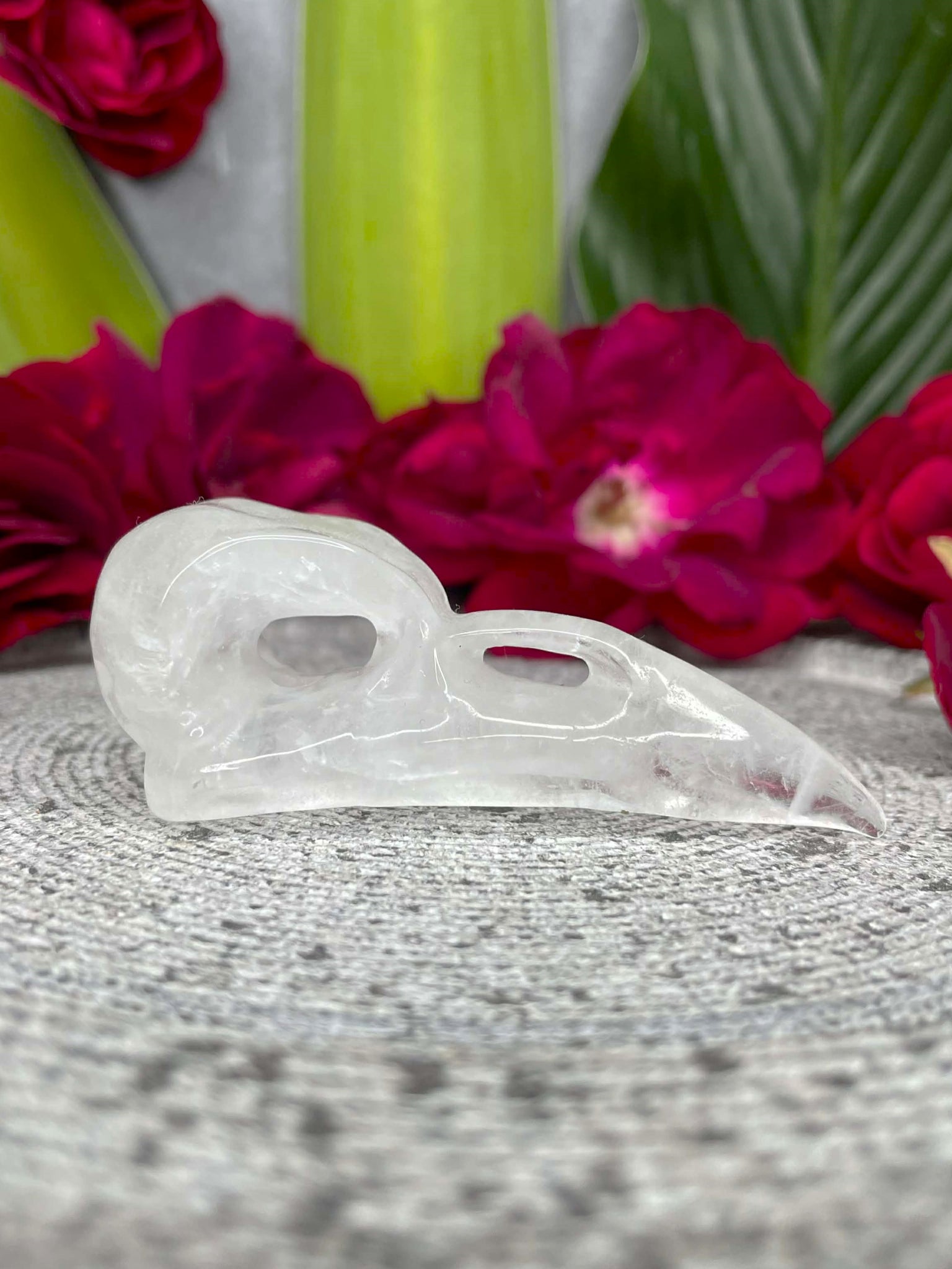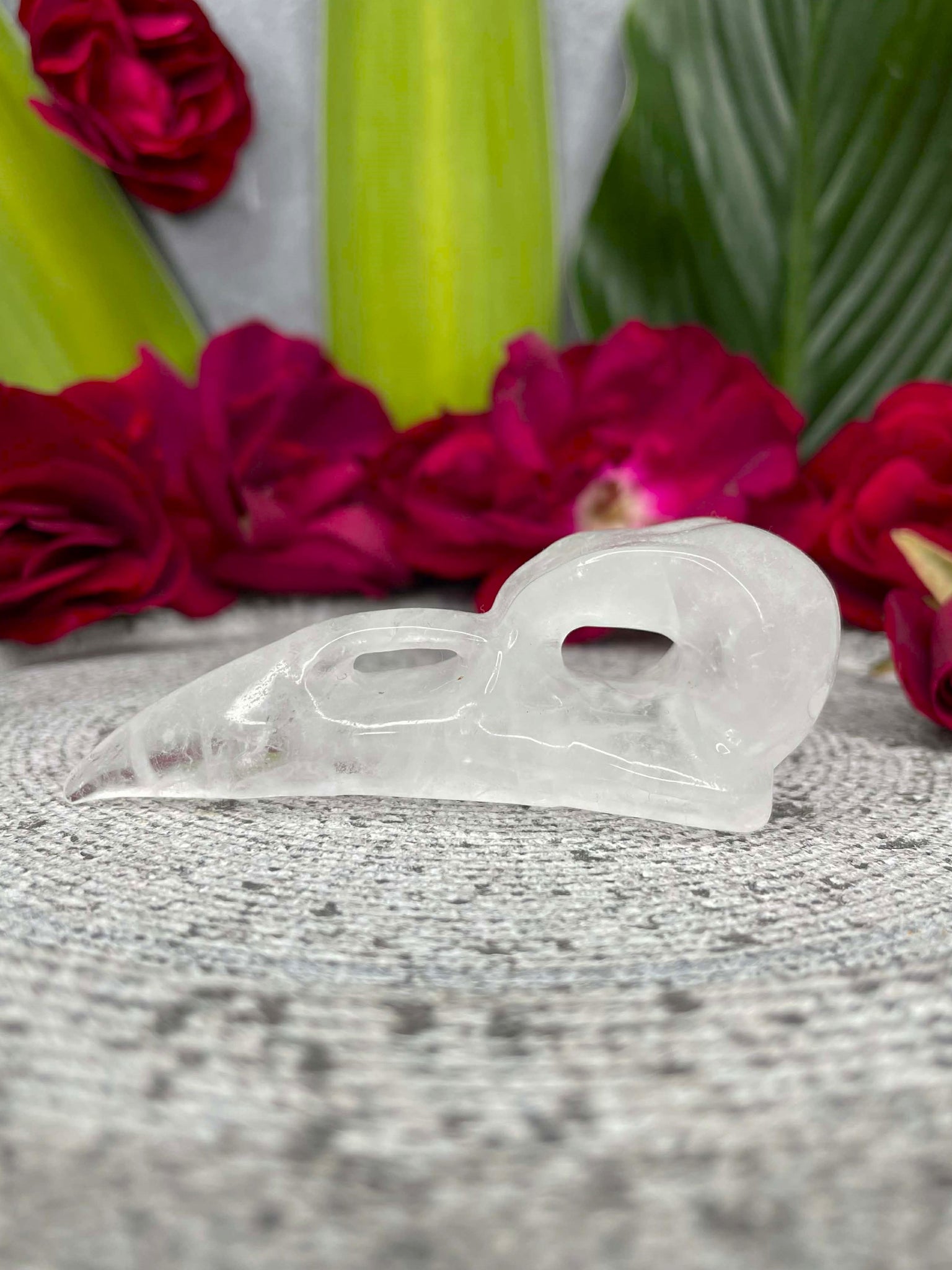Clear Quartz Crow Skull Crystal Carving