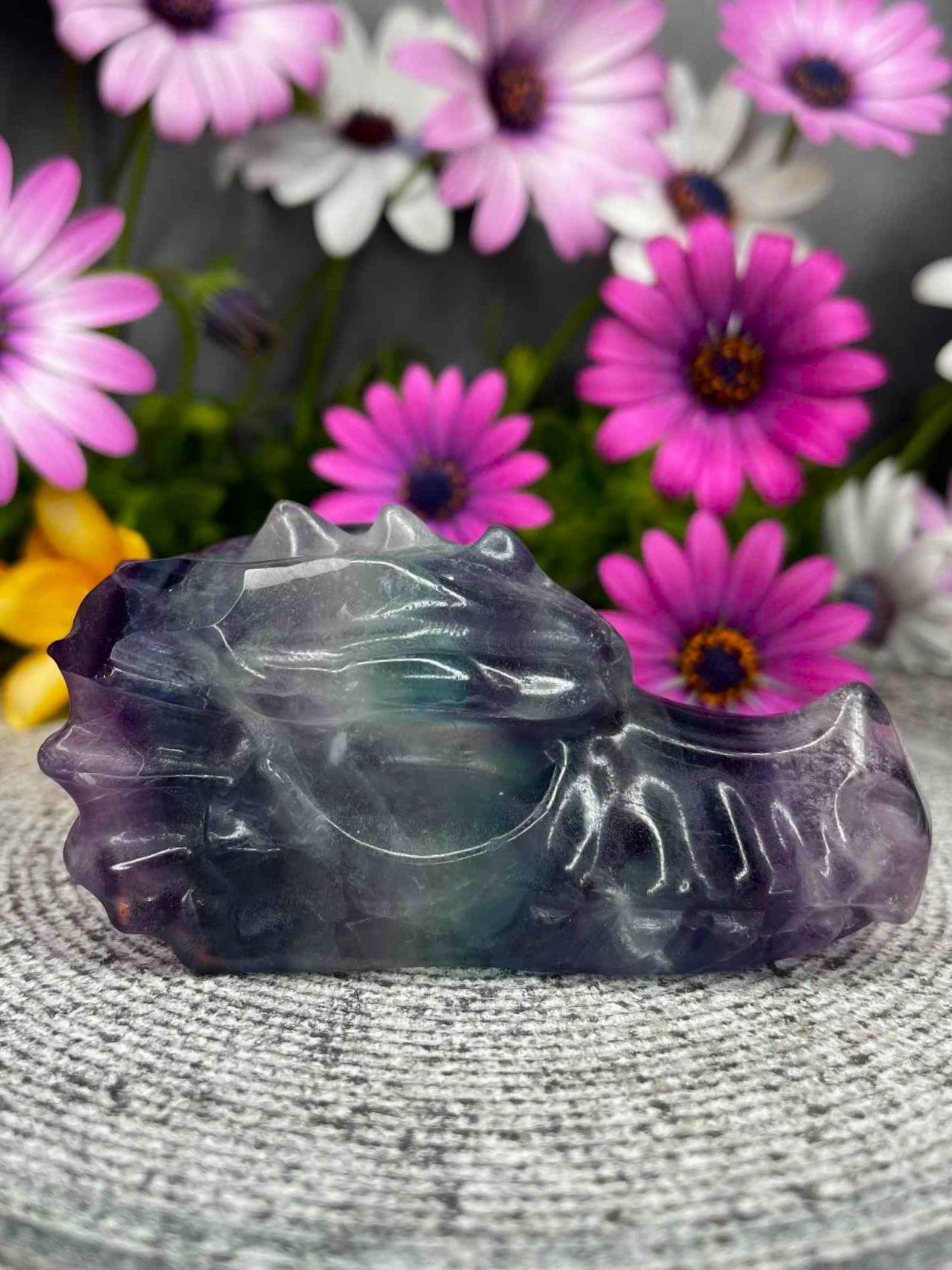 Fluorite is celebrated for its cleansing and stabilising energy, known to bring clarity, focus, and balance to the mind and spirit. Combined with the powerful symbolism of the dragon, this carving becomes a piece of both beauty and meaning — perfect for display, meditation, or as a treasured collector’s item. A true blend of artistry and crystal magic.