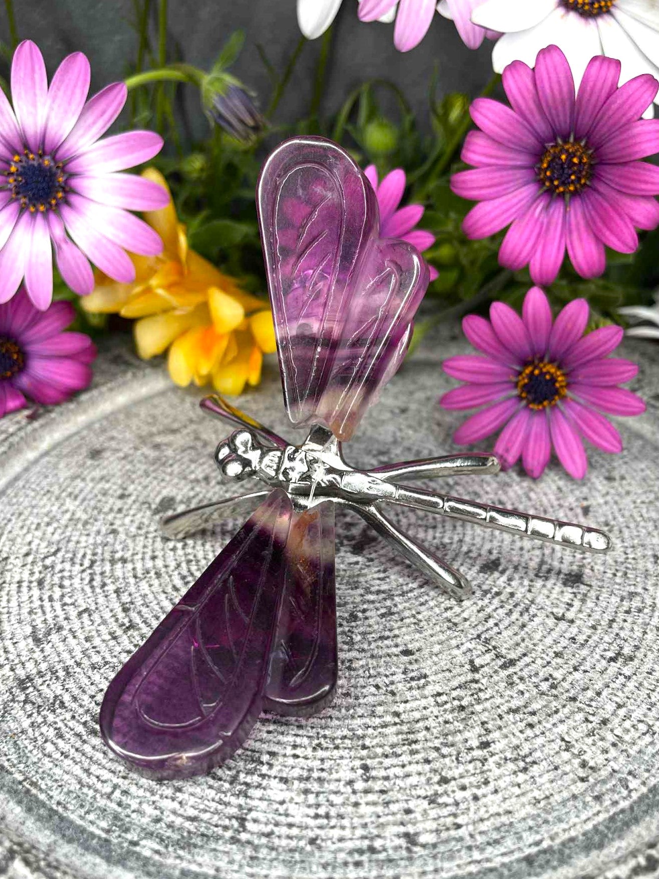 Purple Fluorite is celebrated for its soothing energy, helping to bring clarity, focus, and peace of mind. Combined with the dragonfly an emblem of transformation and lightness—this carving makes a thoughtful gift or a unique addition to any collection, blending artistry with the uplifting energy of natural fluorite.