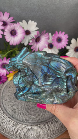 Labradorite is often called the stone of magic and transformation, known for enhancing intuition and inner strength. With its striking blue labradorescence, this dragon carving makes a powerful addition to any collection or a meaningful gift for lovers of mythical and magical symbolism.