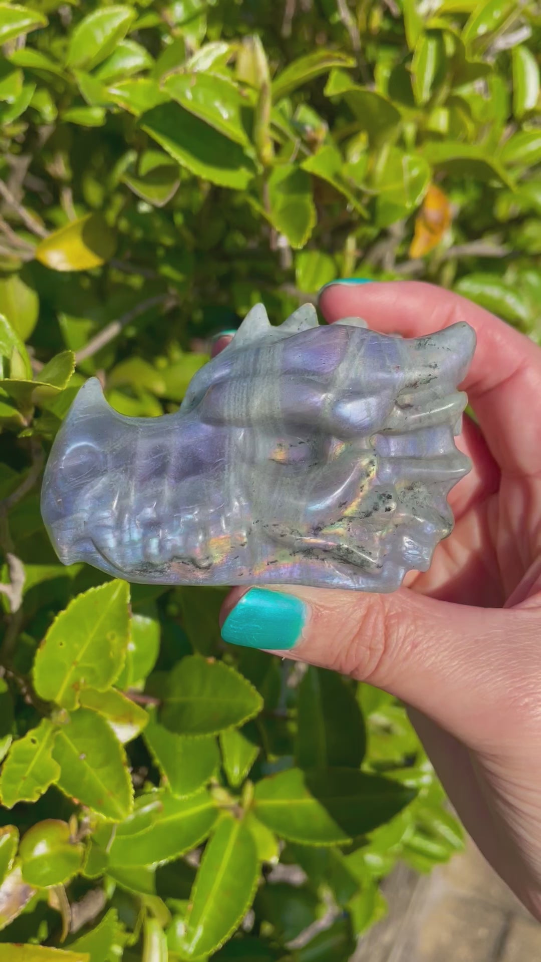 Labradorite Crystal Dragon Head Carving Purple Flash