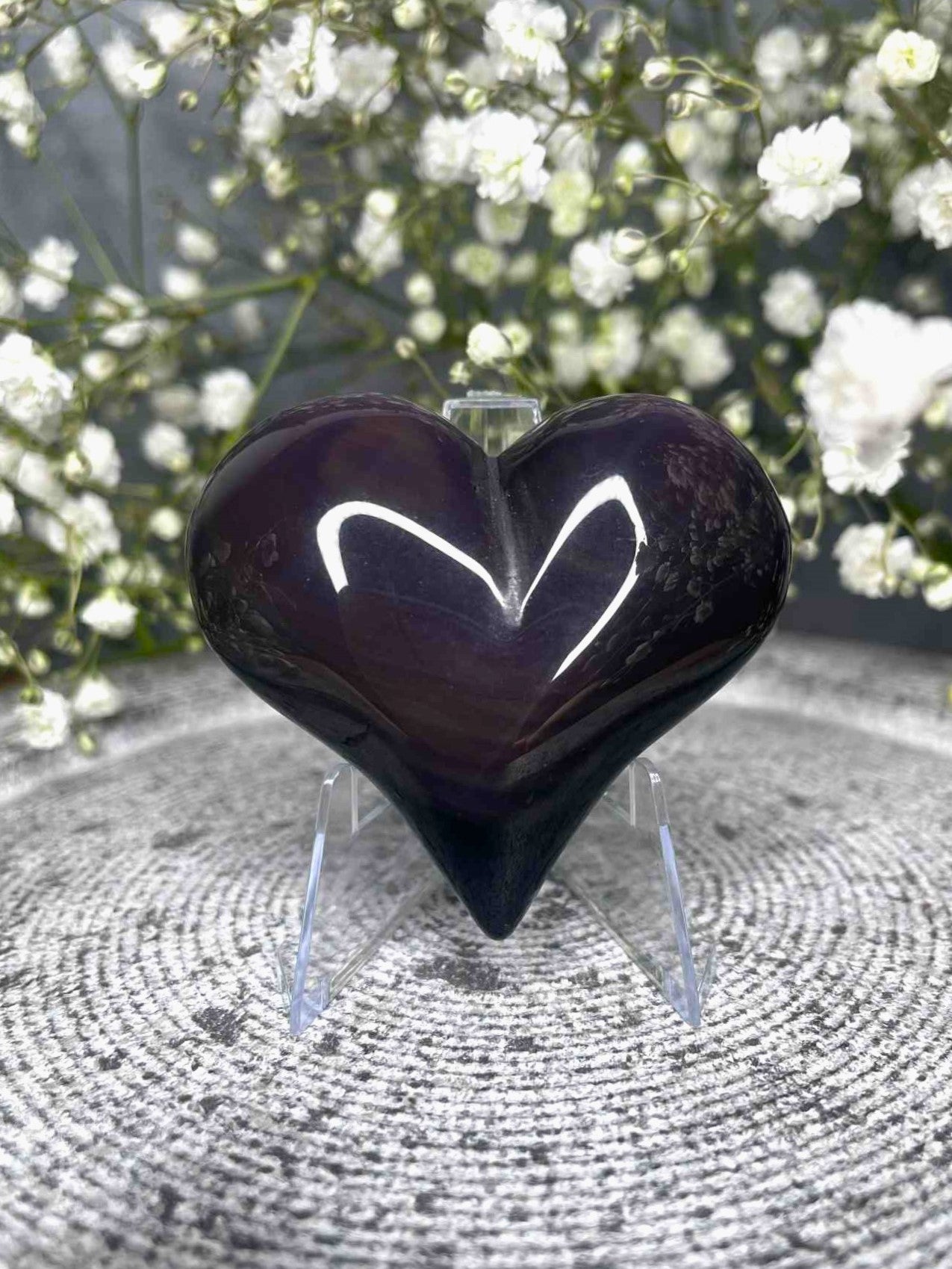Known for its powerful protective qualities, Rainbow Obsidian helps release emotional blockages, clear negativity, and nurture inner strength. The unique teal and purple flash brings an added layer of calm, clarity, and spiritual insight. You will receive this exact piece, making it a one-of-a-kind heart to cherish, hold, or gift with meaning.
