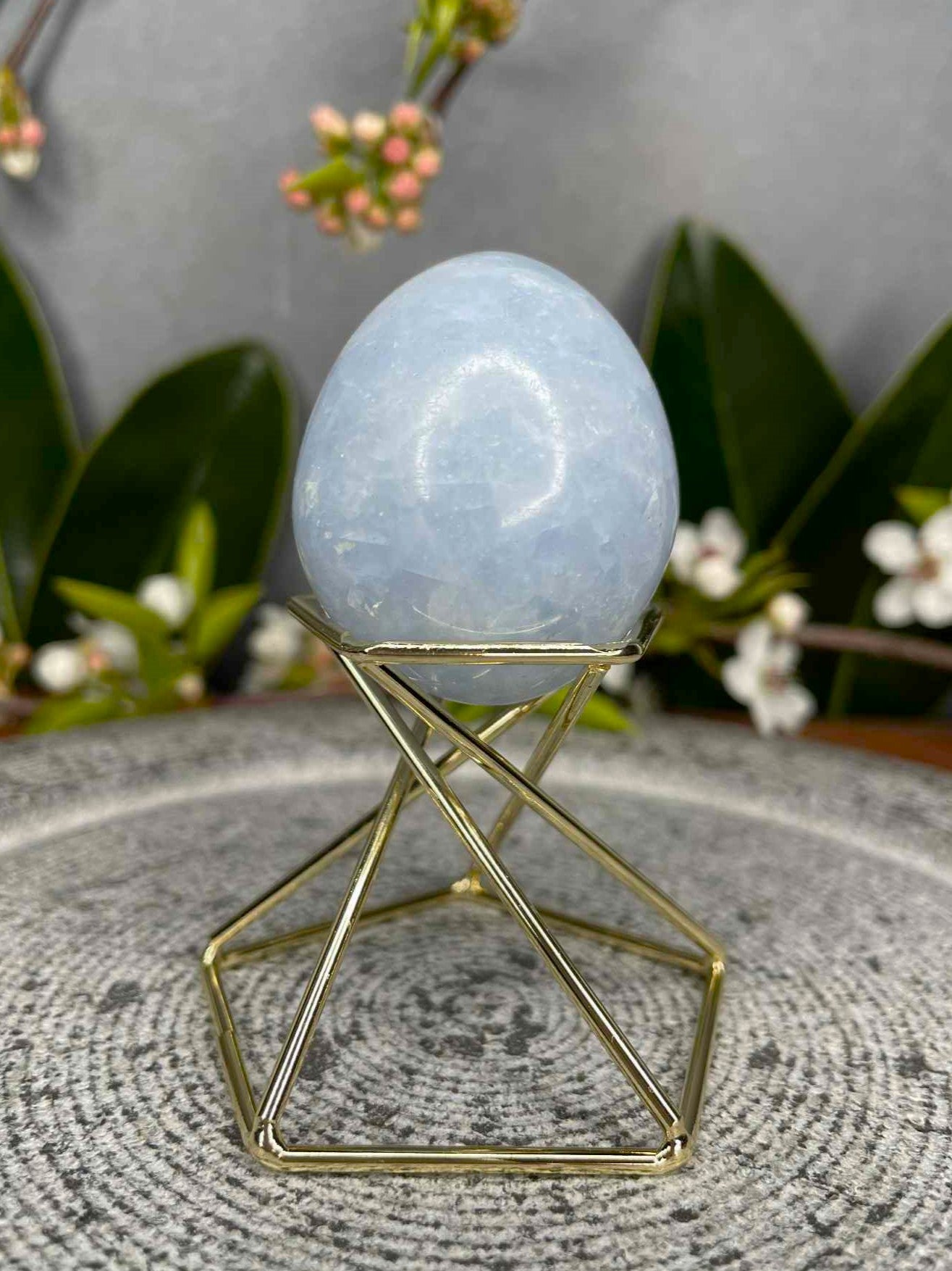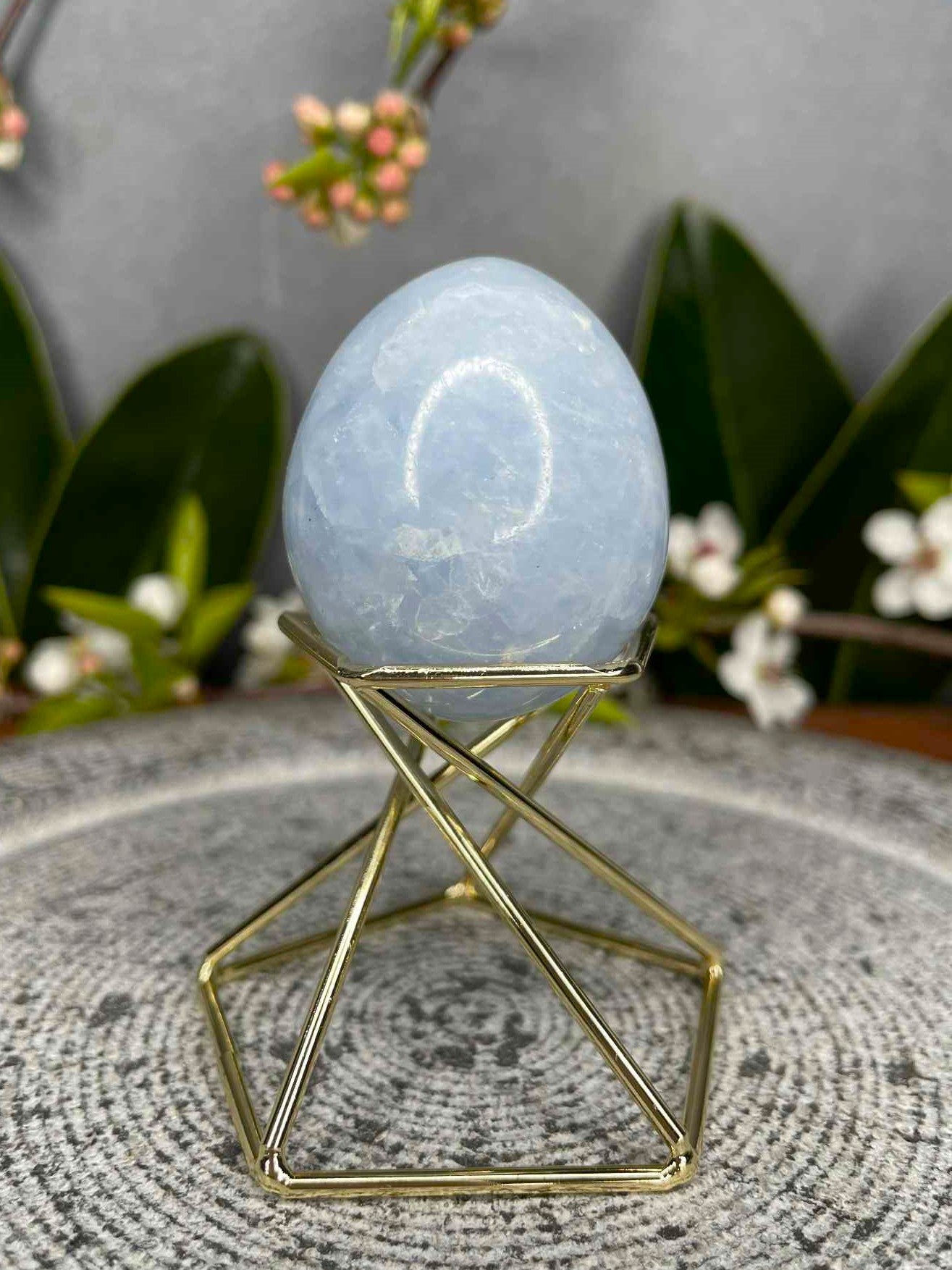 Celestite is widely known as a crystal of peace, clarity, and higher guidance. It is believed to quiet the mind, ease worries, and strengthen spiritual awareness. Many use Celestite in meditation to connect with intuition, invite serenity, and bring a sense of balance to both heart and mind. Shaped into an egg, this crystal becomes a powerful symbol of renewal and gentle protection, making it a thoughtful addition to any collection.