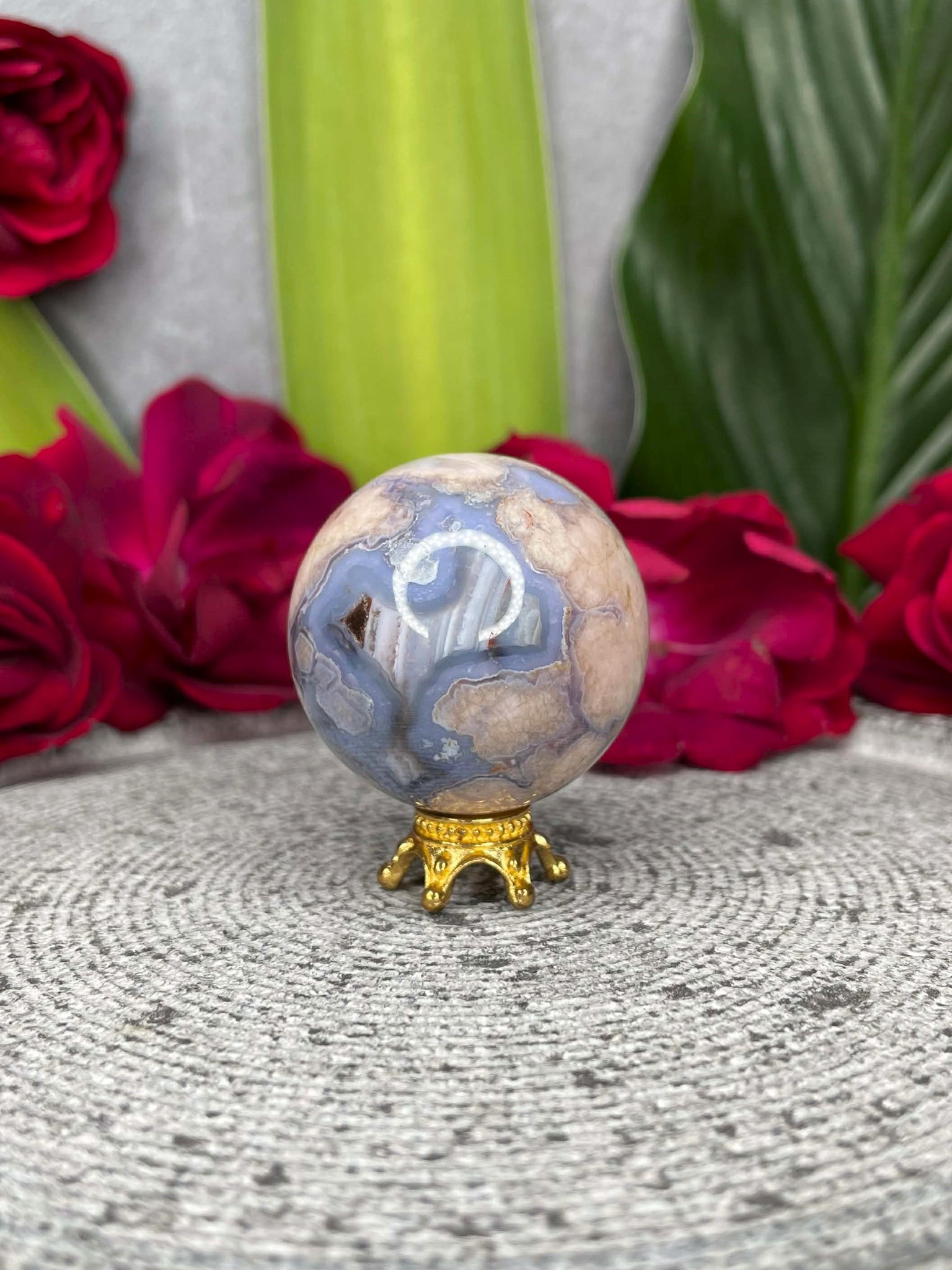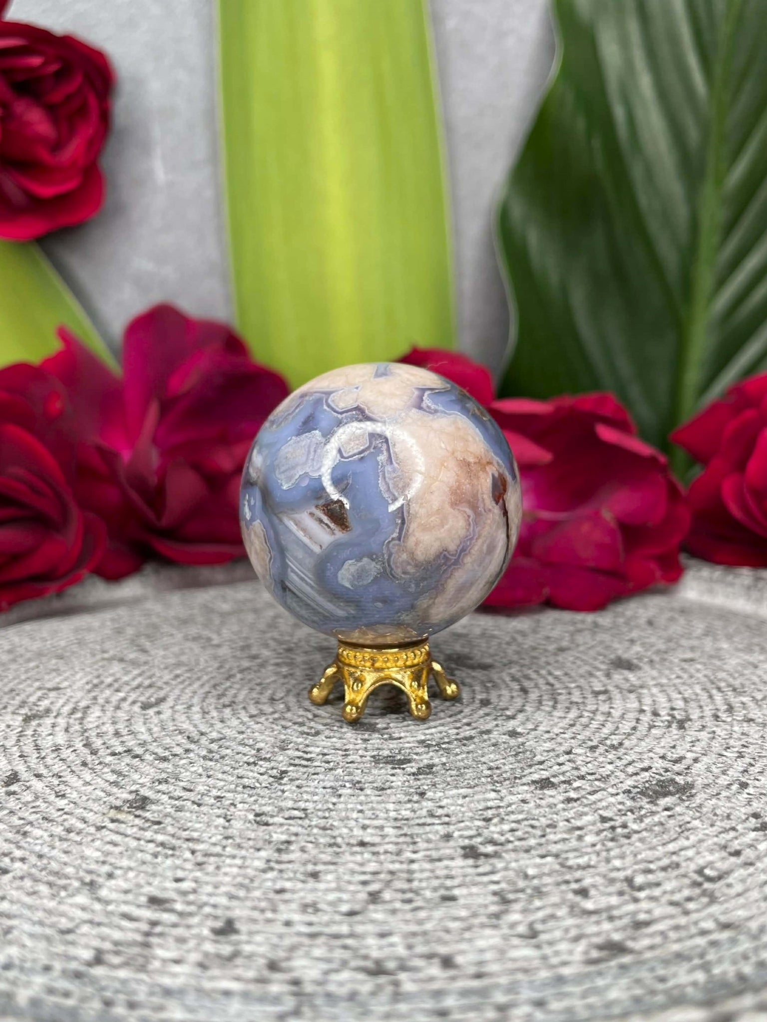 Known as a stone of growth, hope, and emotional healing, Blue Flower Agate nurtures the heart while encouraging new beginnings and inner confidence. It is believed to ease stress, quiet the mind, and help you move forward with clarity and optimism, like flowers blooming after rain. The sphere shape radiates its energy evenly throughout the space, making it ideal for promoting harmony, gentle strength, and a sense of calm balance in your home or daily life.