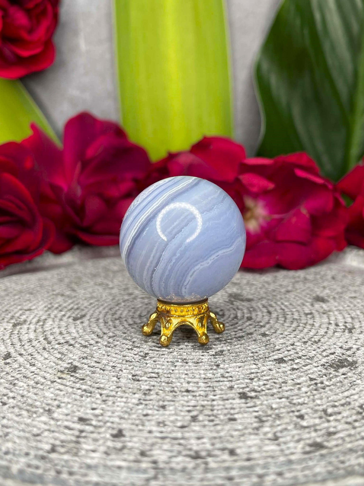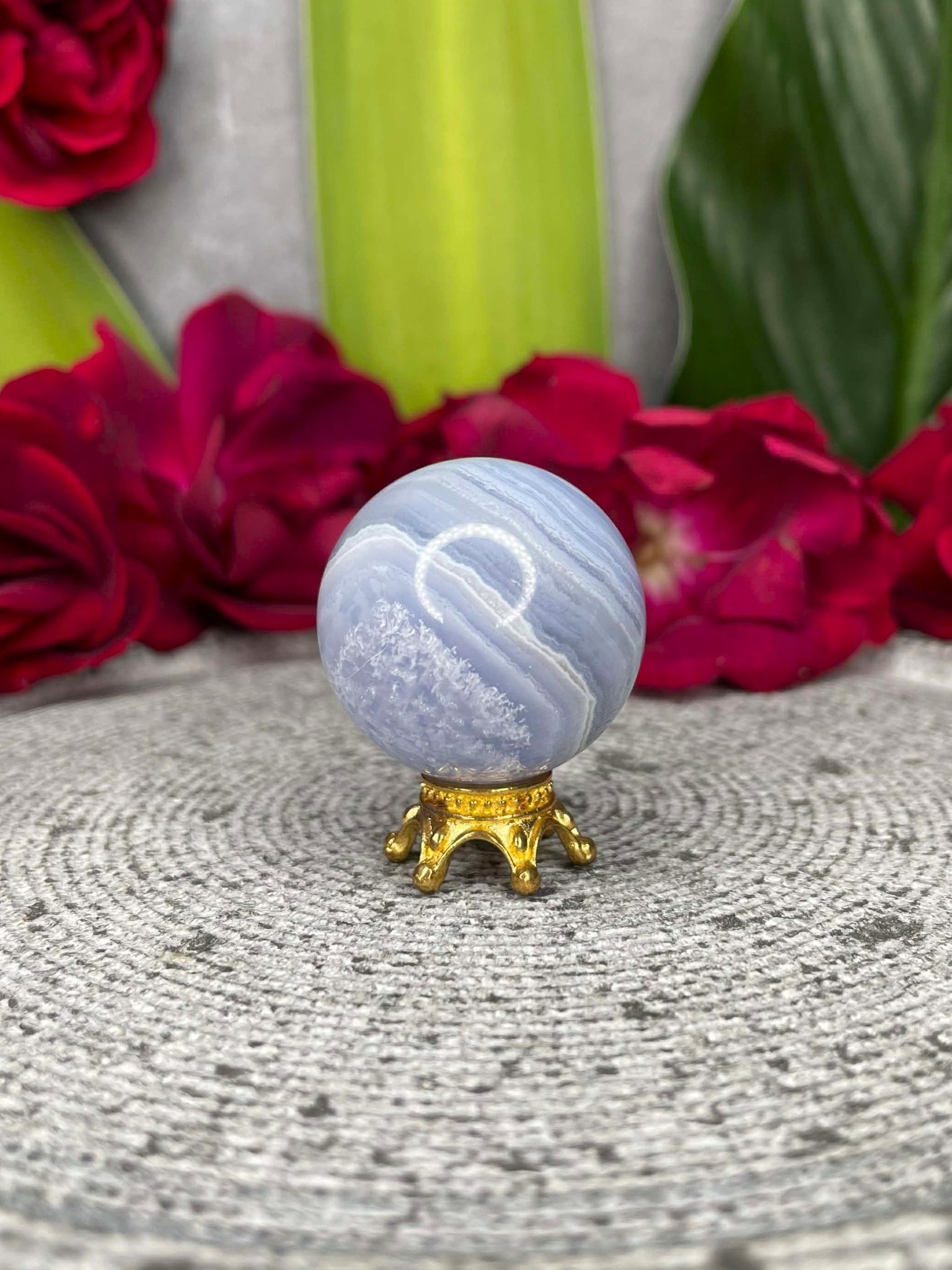 Blue Lace Agate is often associated with peace, clear communication, and emotional balance. Carved into a sphere, its energy is believed to radiate evenly in all directions, making it ideal for meditation, relaxation, or creating a soothing atmosphere in your home.