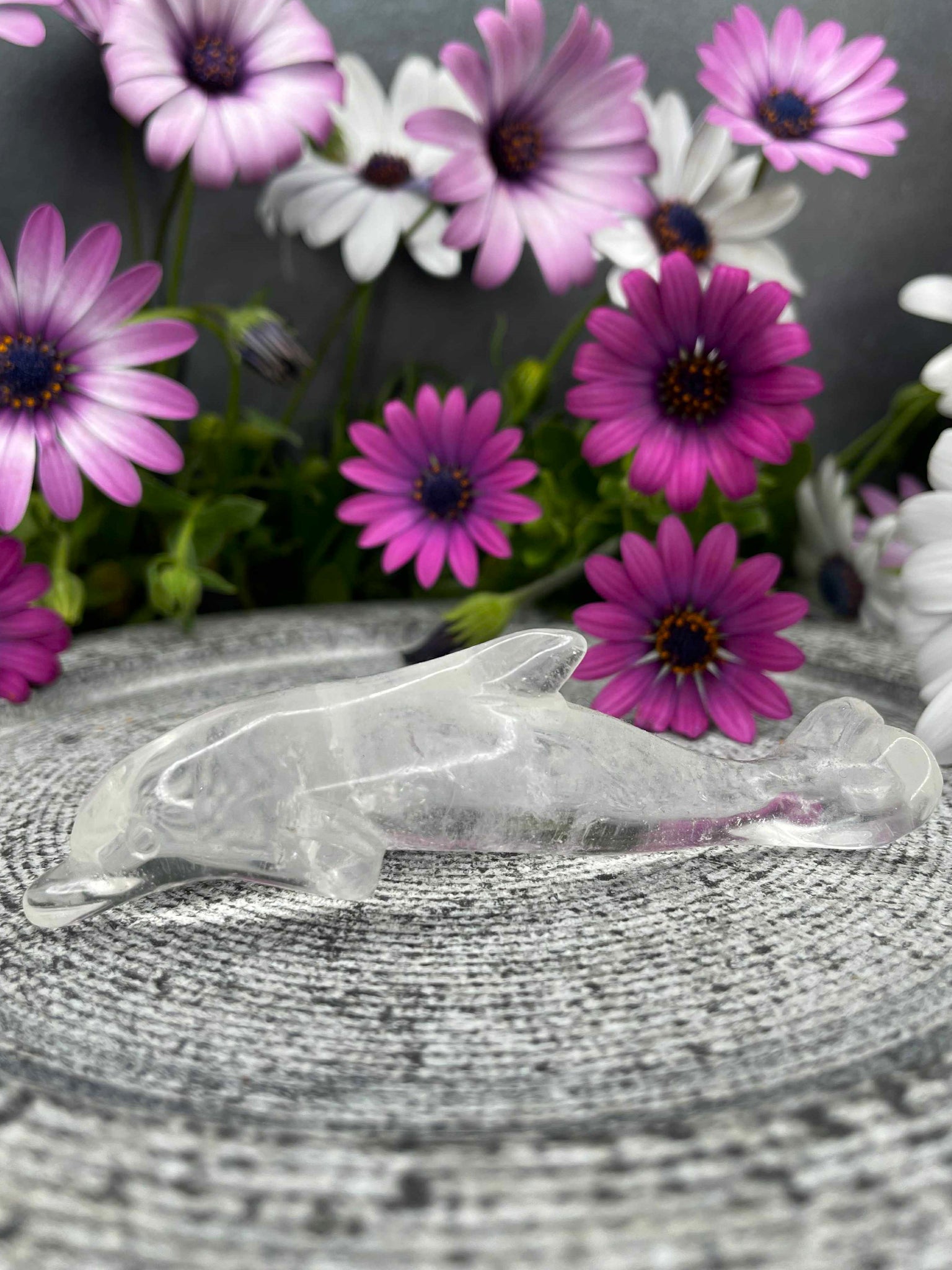 Stunning Clear Quartz Dolphin Crystal Carving